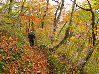 ブナの斜面を登りつめ、大休峠へとたどり着く