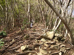 雑木の急登、、緩(ゆる)んだと思えば、また始まったり、時折ニュルっと足 すくわれて、、、