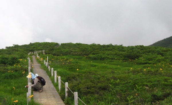 あっ 荒島岳や! 大長山かも、、とアタフタしてたら、ササユリに混じってキスゲもポツポツ、、
