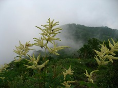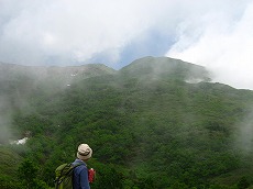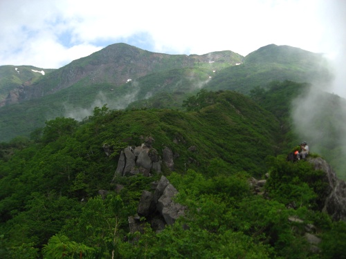 太陽が一瞬、顔を出し、稜線のブナをさっと照らす、、、むぅ〜っと熱風、、晴れればこうよ〜ん ってふうに、(^_^;