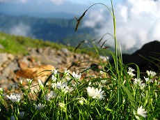 マイヅルソウ、ダイモンジソウ、ヨツバシオガマ、ミヤマキンポウゲは花畑