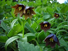 クロユリが所狭しと咲いていて、陽の光に透かして見ると、ステンドグラスのランプのようにエキゾチックに輝いている。