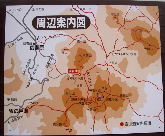 〜大船山13:40(御池)14:50〜登山口16:25〜温泉16:50(泊)