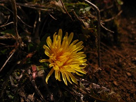 申し訳程度に咲くタンポポ、キジムシロの黄色など