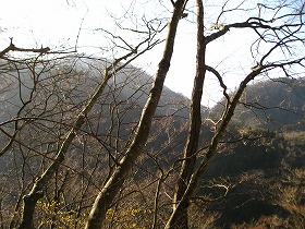 石灰岩のゴツゴツ地帯が、やがて感じのいい二次林に変わり、鍋尻山の例の(!)白斜面がこっちに迫って見えてきた。