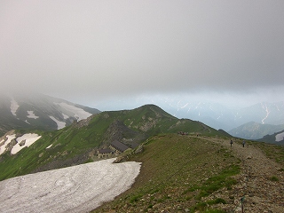 白馬山荘−大雪渓分岐−丸山−杓子沢のコル−鑓ヶ岳(昼)