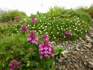 イワツメクサ、タカネツメクサ、タカネシオガマ、せり科のはミヤマウイキョウか