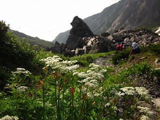 大雪渓への分岐を過ごすとウルップソウやハクサンイチゲ