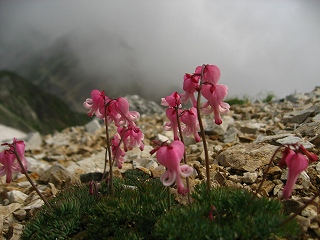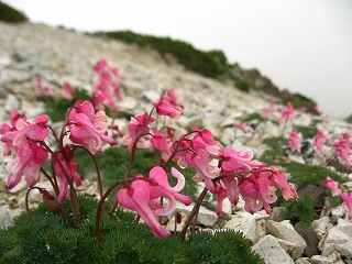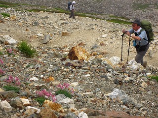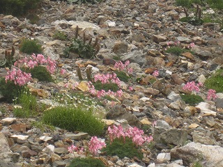 ガレ場になれば、単体コマクサ(笑)、風にそよぐイワツメクサ、タカネシオガマ