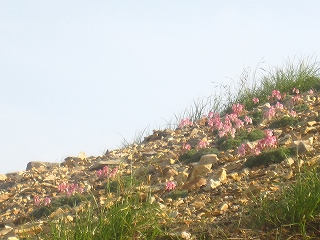 案の定、山腹道のガレ場にはコマクサがいっぱいで、
