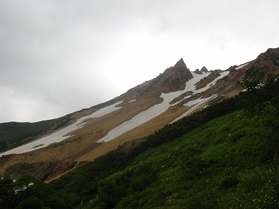 やがて、昨日、ちらっと散歩した旭岳山腹の雪田なども見えてきた。