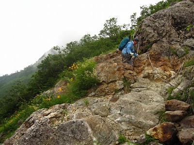 前を行ってはったオジサンが、先に行って、と言うので、キスゲを諦め岩場を伝う、、(/_;)