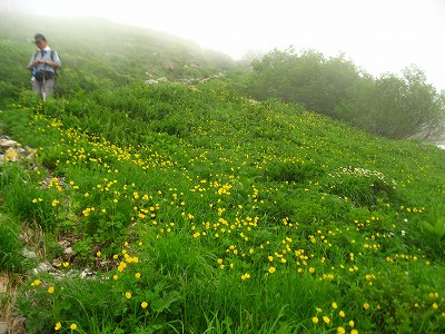 ハクサンイチゲ、ミヤマキンポウゲなどが出てきたら、いよいよ雪田が近づいて