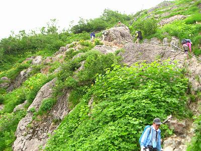 鑓ヶ岳で出会ったニイサンは、あの鎖場で団体さんと一緒になったと言っていた。