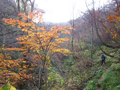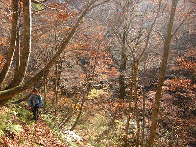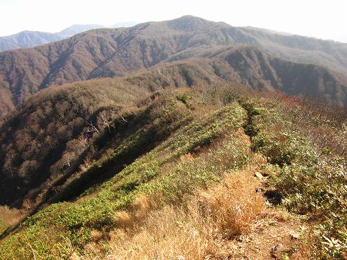 左手には赤兎山からの派生尾根、右手には大長山の稜線が、、もうすっかり秋を終わらせて
