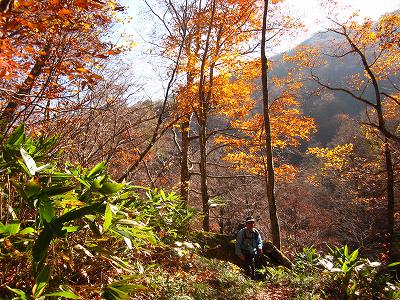 ちょうど、カップルが飛び石で渡渉して、対岸の斜面に取りついているところ。