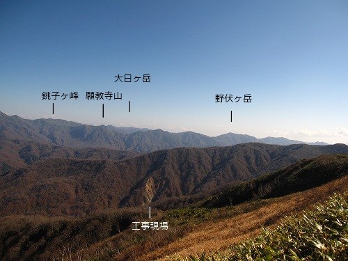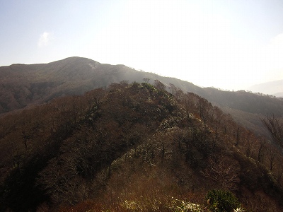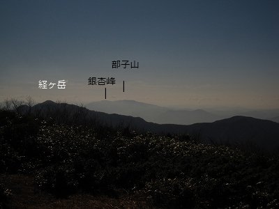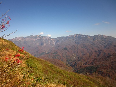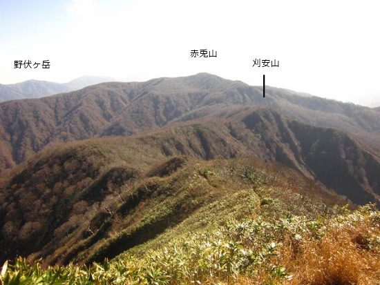 正面の刈安山の向こうには、大長山が顔を覗かせ