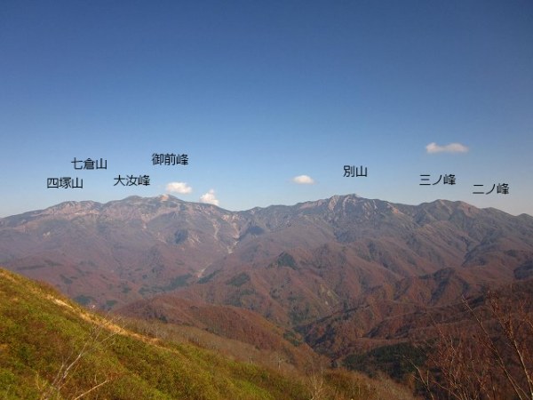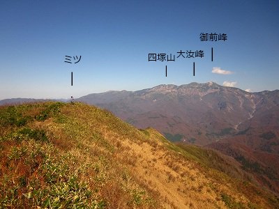 ロープ伝って岩場を過ごすと尾根に乗り、もうそこからは大展望のまま大長山にたどり着く。