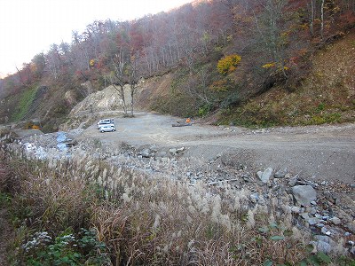 奥が工事現場だからダンプの行き来もあるだろう、しっかりした道だと思ったが