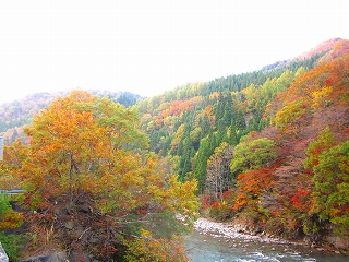 振り向くとモミジ越しに白山の稜線が見えてきていて