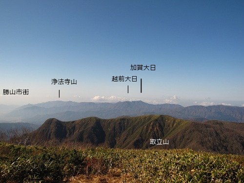 そして背後の白山の尾根が、だんだん広がって見えてきた。