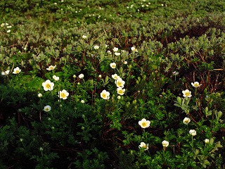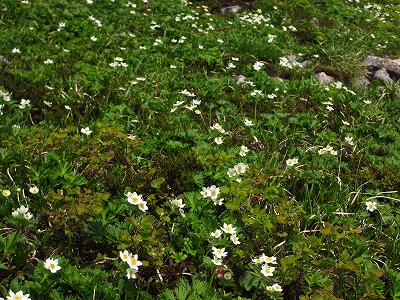 少し進めばハクサンイチゲ、ミヤマキンポウゲが渾然一体と咲き競ってて