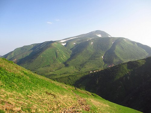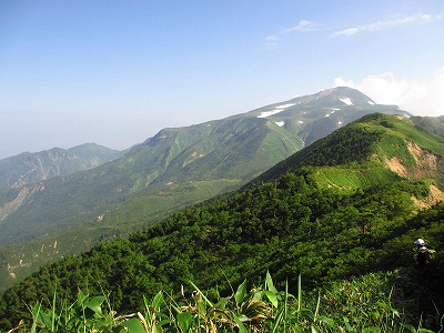 振り向きざまに見る白山、