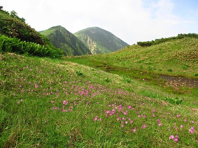 そのすぐ先の池塘の周りは、ハクサンコザクラの小群落。