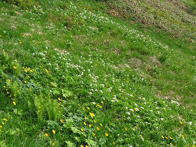 再び、ハクサンイチゲの群落になり