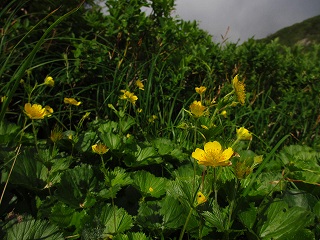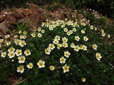 ガレ場を覗き込むと、そこはミヤマキンポウゲの花畑