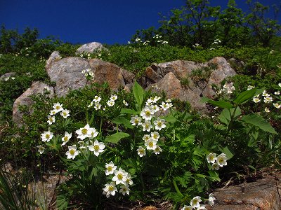 その先にはまた、ハクサンイチゲが、いっぱい咲いてて
