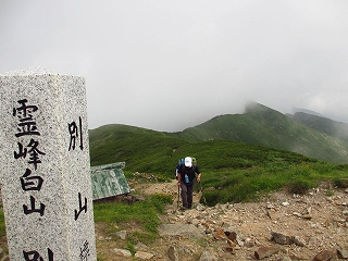 トイレだけ借りて出てくると、背後の別山のガスが払われ、稜線が、どんどんクリヤーになっている。