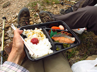 私らは神社の隣の岩場に座って、ちょっと早いけど、お昼にする。