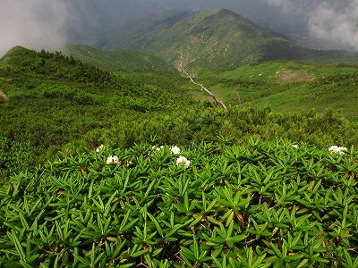 ハクサンシャクナゲが瑞々しい姿で慰めてくれる中、しんどいしんどい登り返し。(笑)
