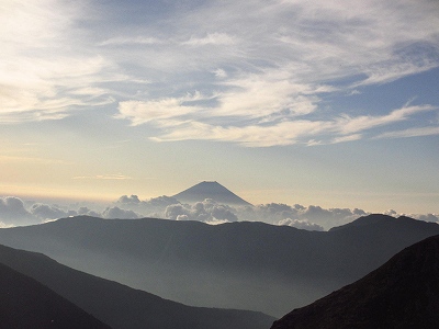 分岐まで戻って、小尾根を下り始めたら、ふっと富士山が雲に隠れてしまい、