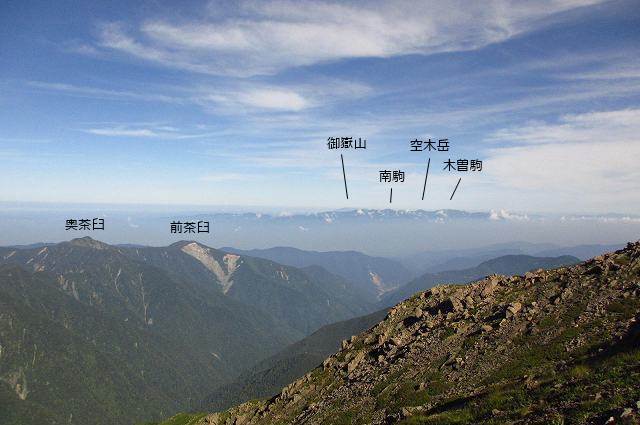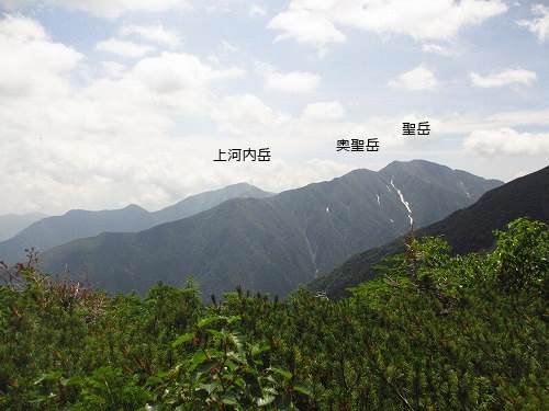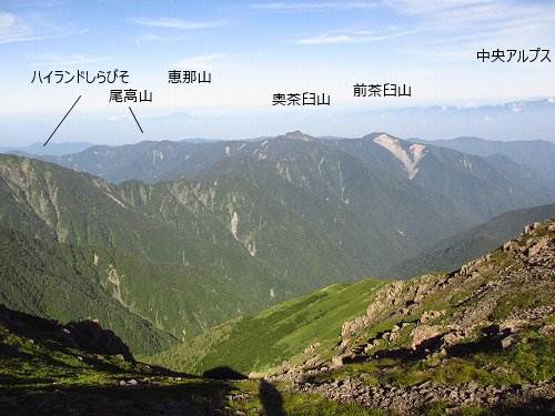 ここまで下ればもう樹木の間に赤石岳や聖岳が望める程度。