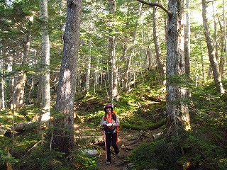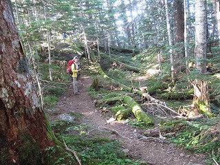 富士見平からは、ダケカンバやシラビソの樹林帯を坦々と下って