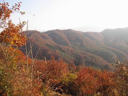 かくして難なく尾根に乗り、明るい雑木林をルンルン辿れば、正面にポッコリ紅葉ピーク